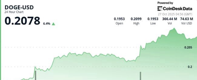 在周二的交易中,狗狗币上涨了1.4%,达到0.21美元,标志着自8月底以来首次明显突破0.2026美元的阻力位。这种表情币的价格走势显示出相对于更广泛市场的相对强度,表现超过CD5指数超过2%。交易量比七天平均水平激增9.82%,反映出机构在表情资产领域的持续参与。